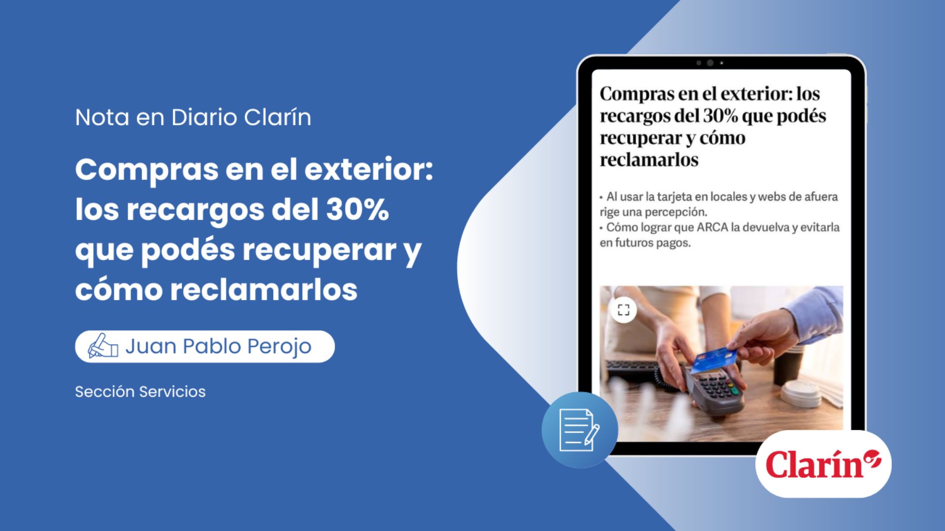 "El ABC de los impuestos al invertir (...)", por nuestro Co-founder y CEO, Juan Pablo Perojo, para la sección "Servicios" del Diario Clarín.