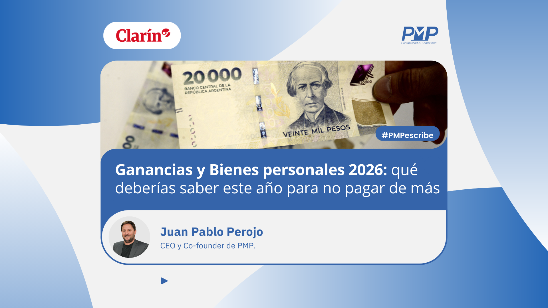 "Llega la 'foto' del impuesto sobre los Bienes Personales: 4 claves para no pagar de más en 2026" nuestro Co-founder y CEO, Juan Pablo Perojo, para la sección "Servicios" del Diario Clarín.