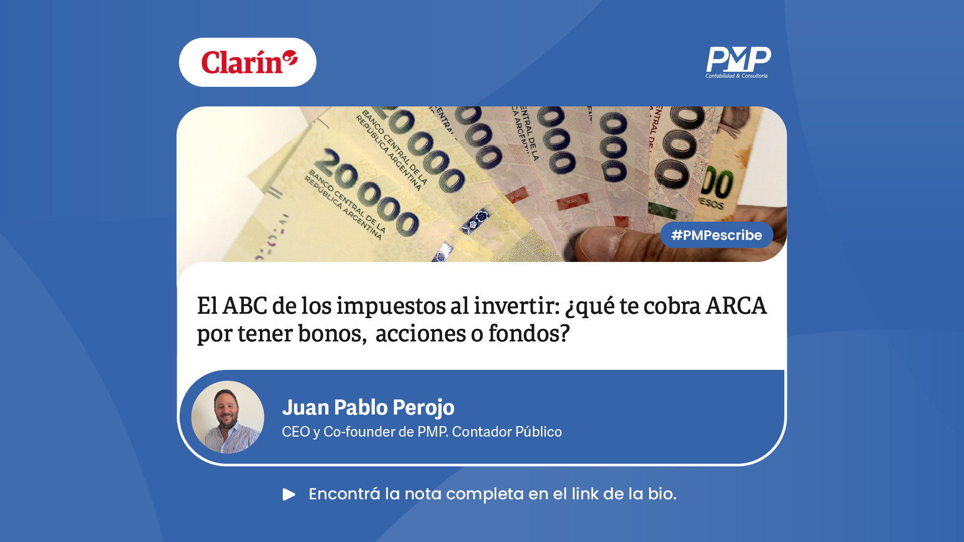 "Llega la 'foto' del impuesto sobre los Bienes Personales: 4 claves para no pagar de más en 2026" nuestro Co-founder y CEO, Juan Pablo Perojo, para la sección "Servicios" del Diario Clarín.